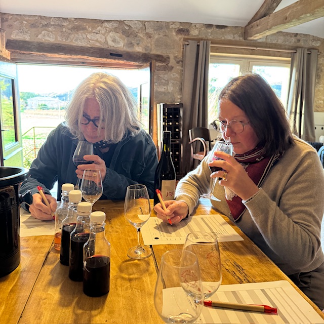 Allez, on est fou. Vous allez créer votre propre vin. Notre chai est organisé avec de nombreuses petites cuves. Chacune d’entre elle contient un vin de cépage. Vous allez goûter, assembler, regoûter pour créer la cuvée qui vous plait. Fred vous expliquera en même temps comment chacun des vins a été vinifié et vous donne des conseils pour comprendre la dégustation. Après avoir bien travaillé (et vous être bien amusé), vous repartez avec une bouteille du vin que vous avez créé. Ensuite, nous pourrons mettre en bouteilles ce vin et vous proposer une étiquette personnalisée, avec votre nom en tant que co-vinificateur (minimum 24 bouteilles).
